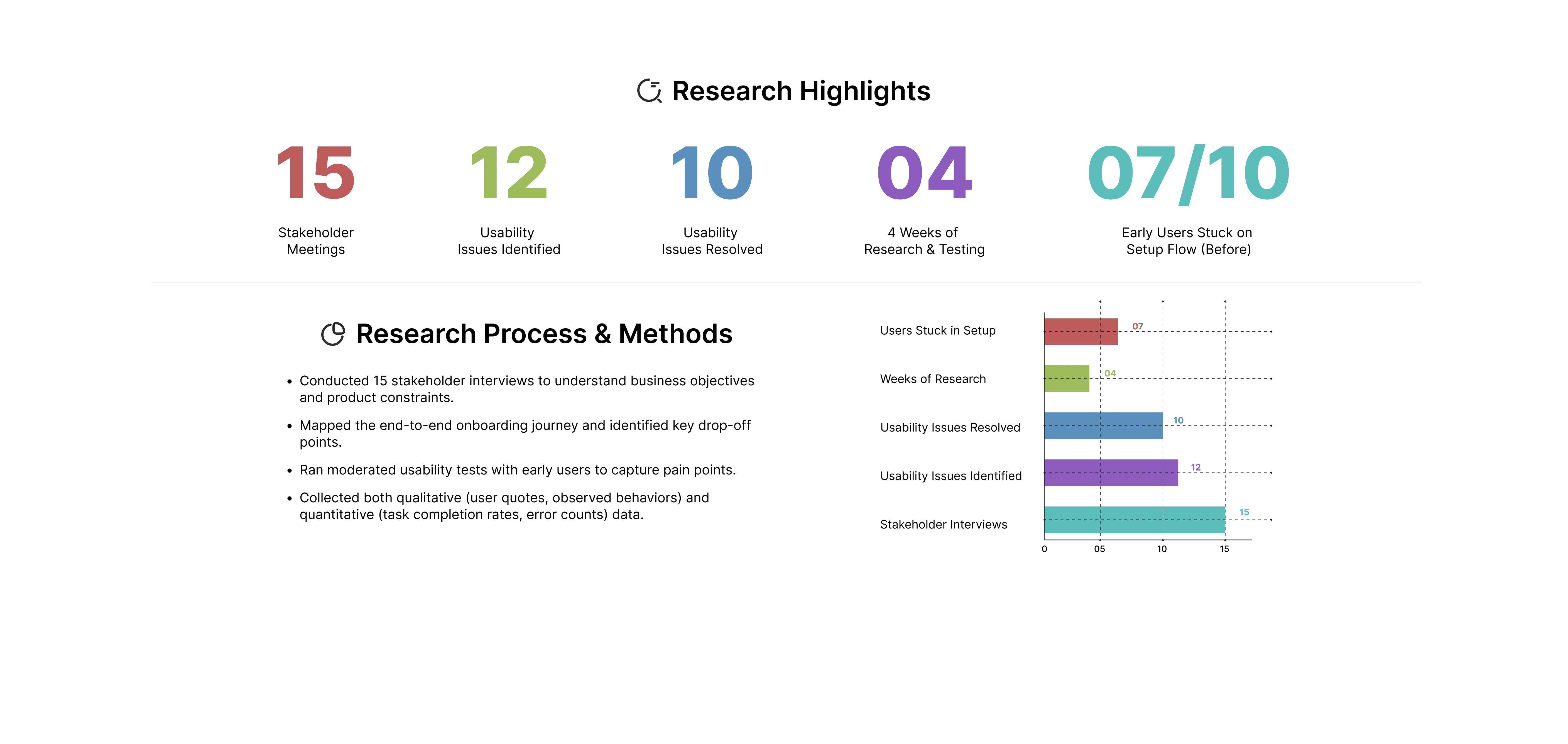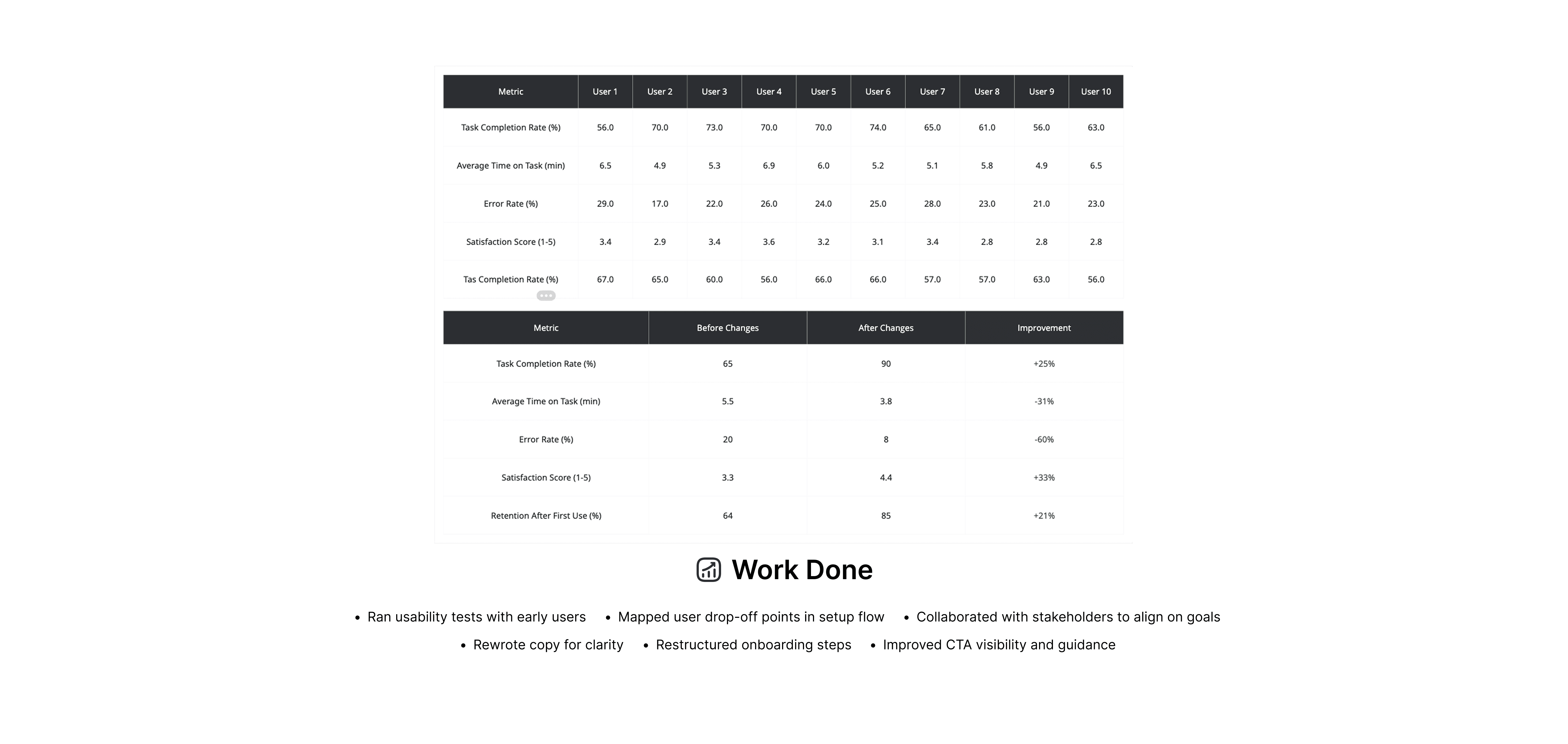 The redesigned onboarding process reduced friction, improved user confidence, and aligned with business goals to increase demo bookings. The 25% increase in task completion directly correlated with higher demo conversion rates. Internal handoff time between research, design, and development was reduced by 30% due to better documentation and communication workflows.