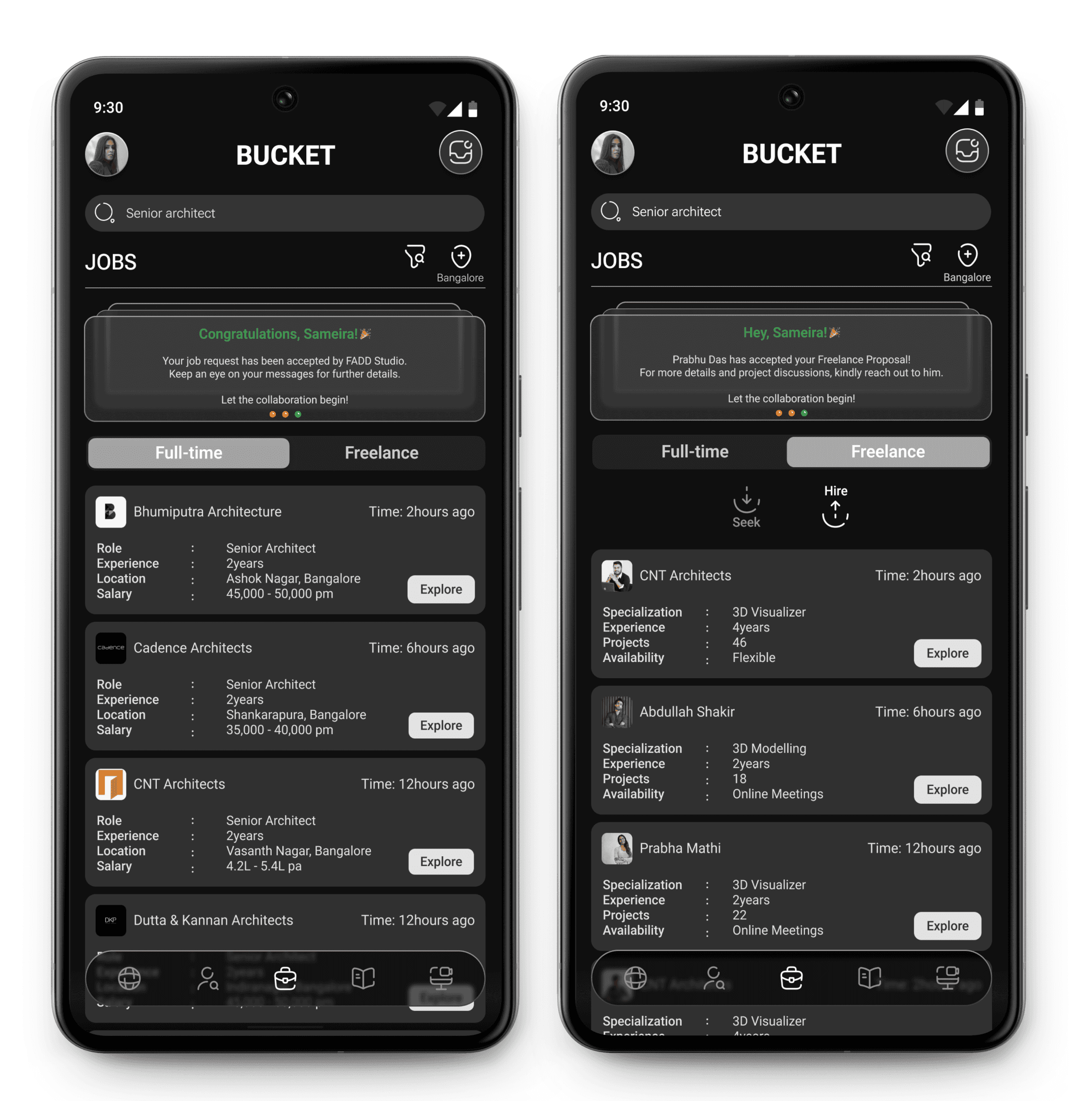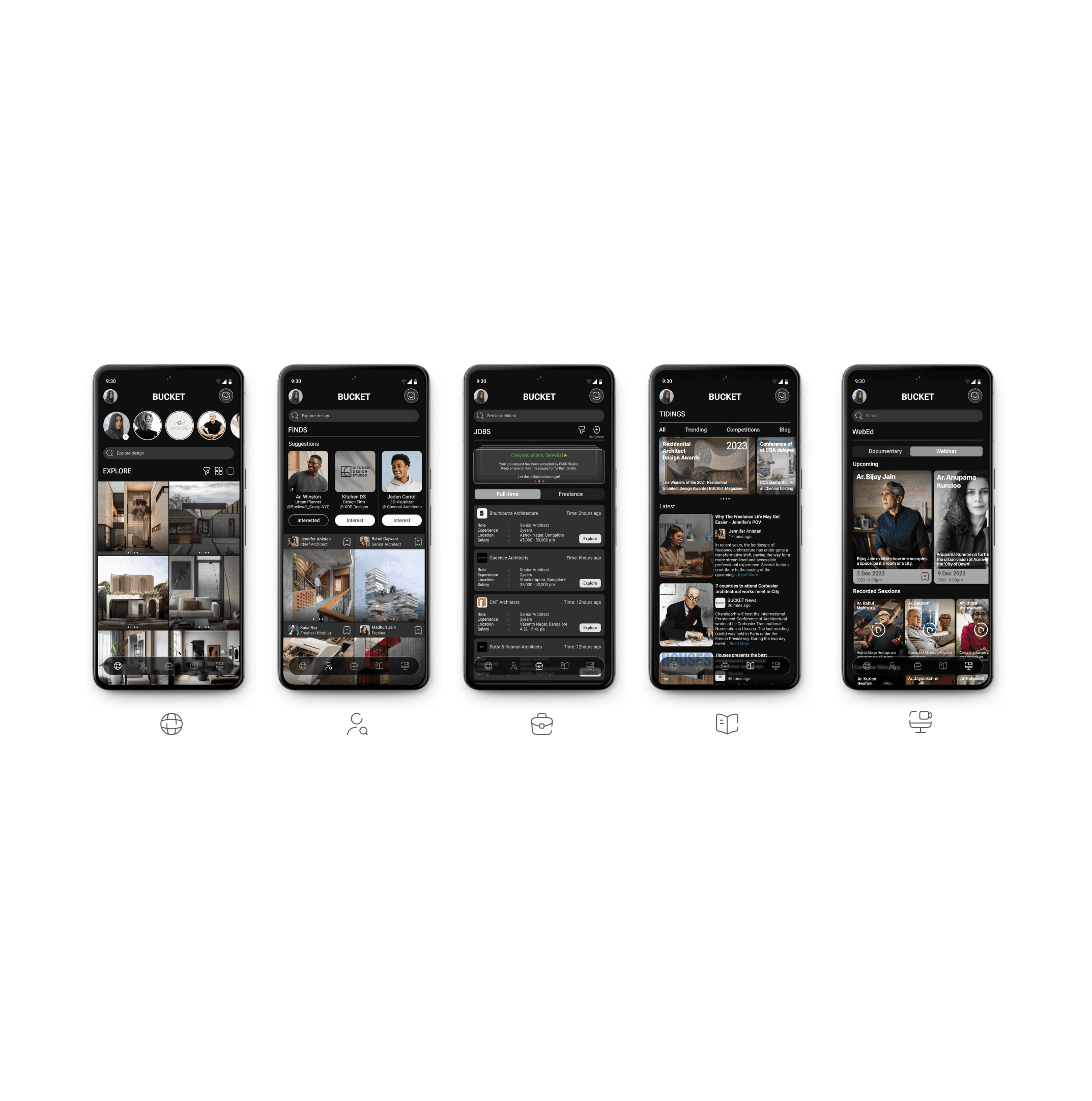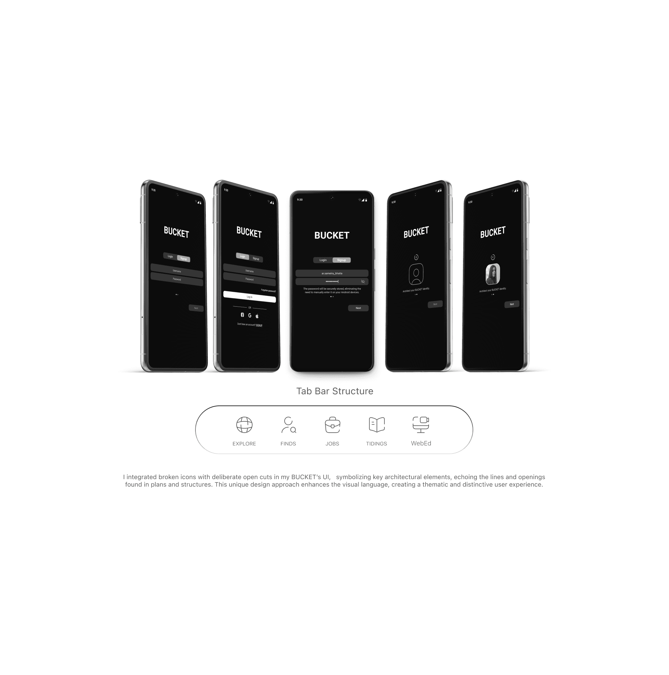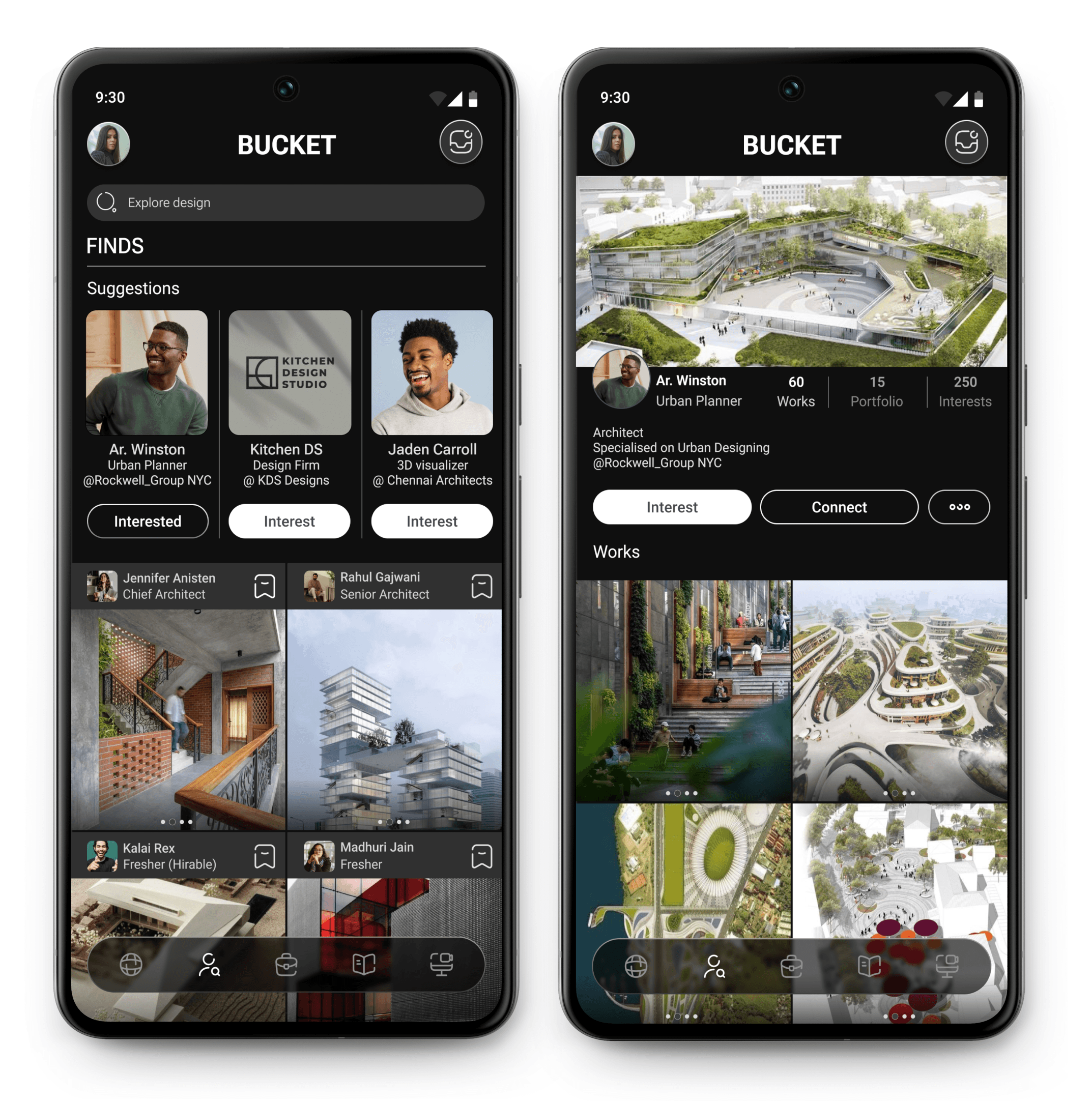 BUCKET is a revolutionary app dedicated to architects, aiming to bridge the gap between professionals, students, and the general public, fostering a deeper understanding of the architectural process.