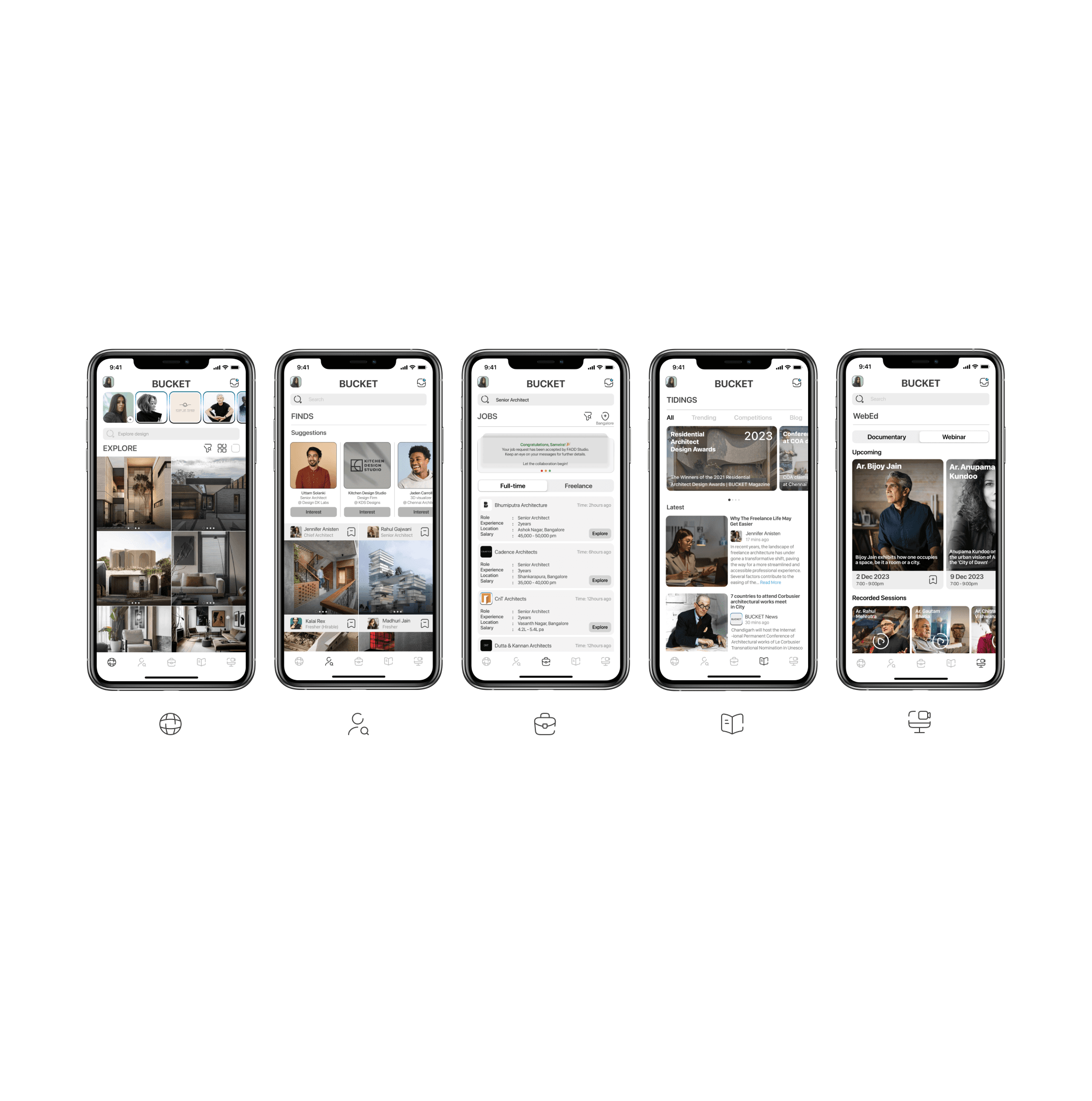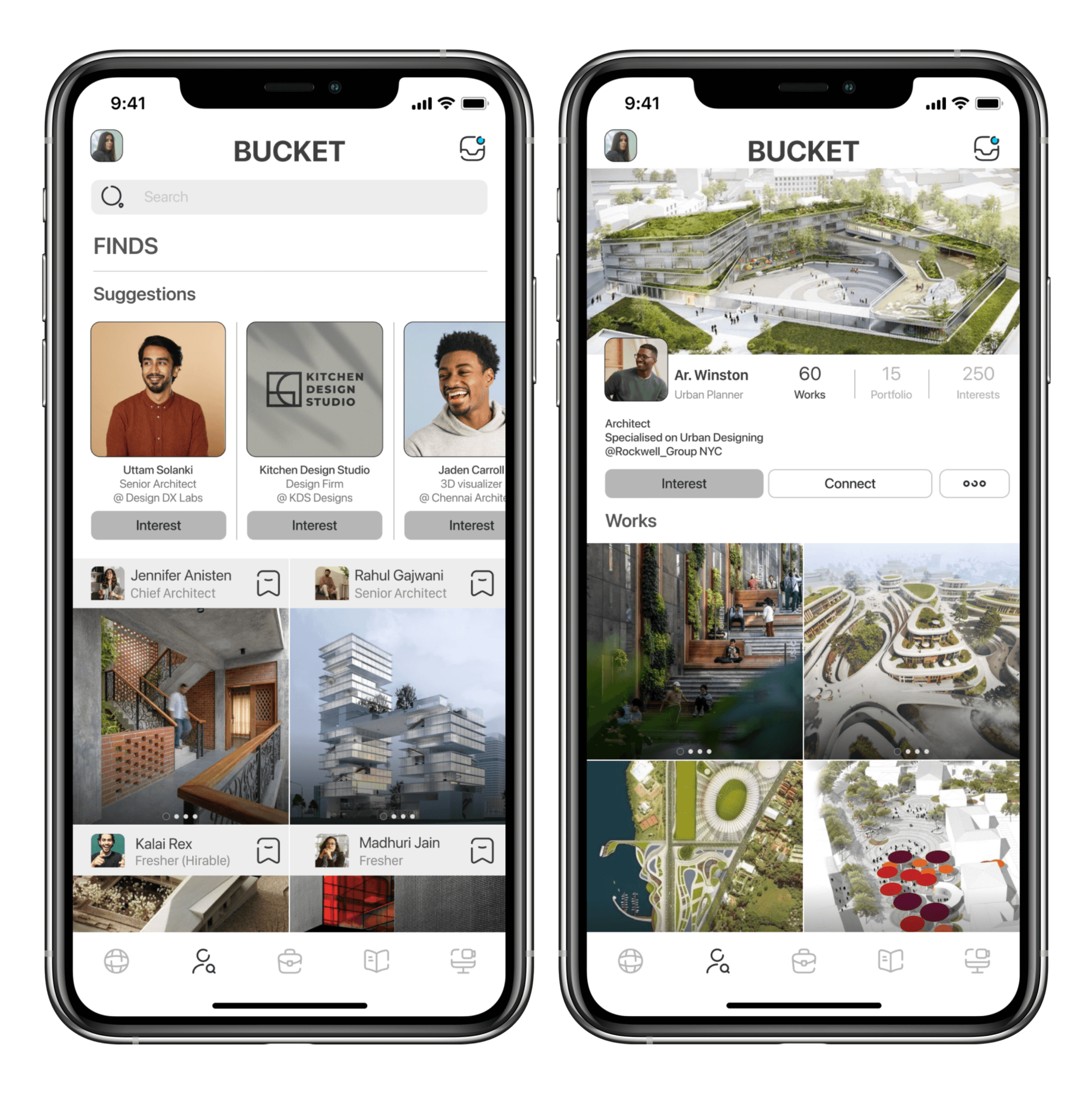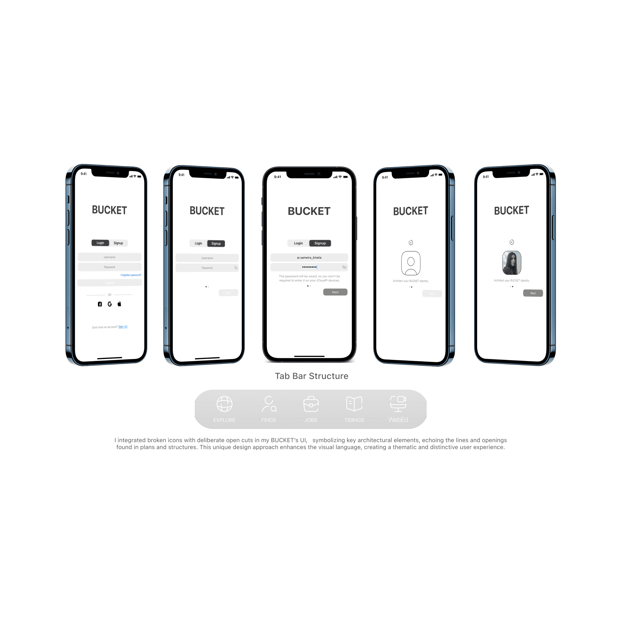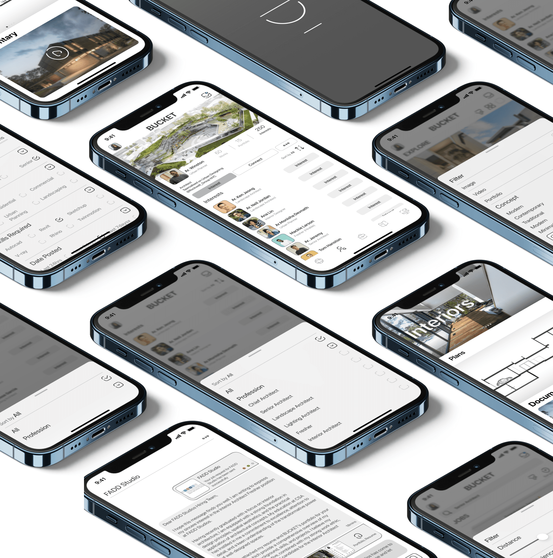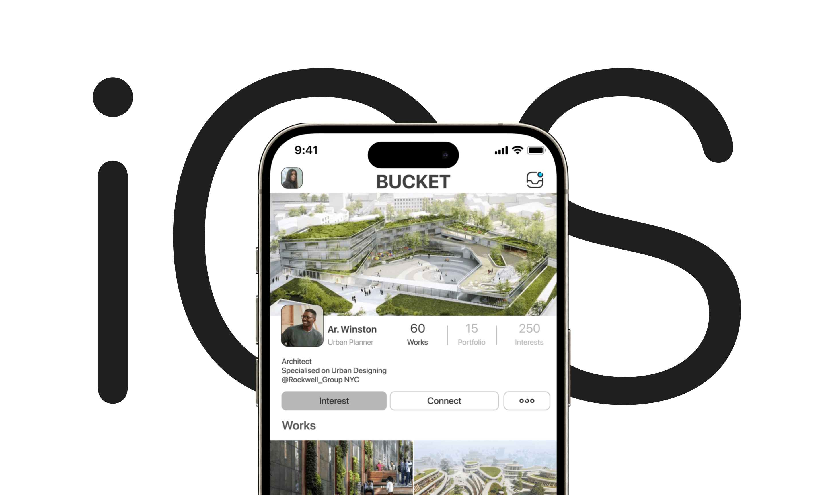 BUCKET is a revolutionary app dedicated to architects, aiming to bridge the gap between professionals, students, and the general public, fostering a deeper understanding of the architectural process.